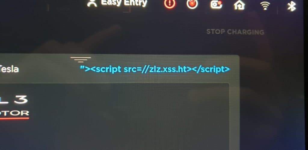 After spending more time messing with the input I saw that the allowed content length for the input was very long. I decided to name the Tesla my XSS hunter payload and continued toying around with the other functionalities on the car.