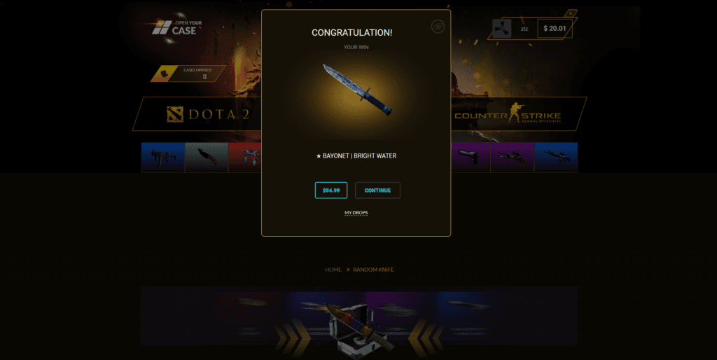 - Cash out your winnings back to your account. Since all of this was controlled by an unknown third party (whoever owned the website) and not the actual game, there was very little trust on whether or not one could actually win the "rarer" items (anything that costs more than the case itself).