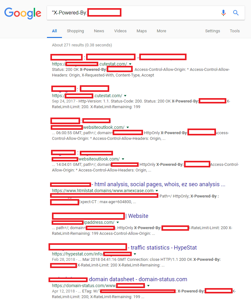 There were almost 300 results for the specific header that were all tied to CSGO gambling or trading websites. This wasn't a true count of how many of the websites existed as many were websites like "htmlstat.domains" or "ipaddress.com", but it was definitely interesting seeing how this one unique string tied them all together.
