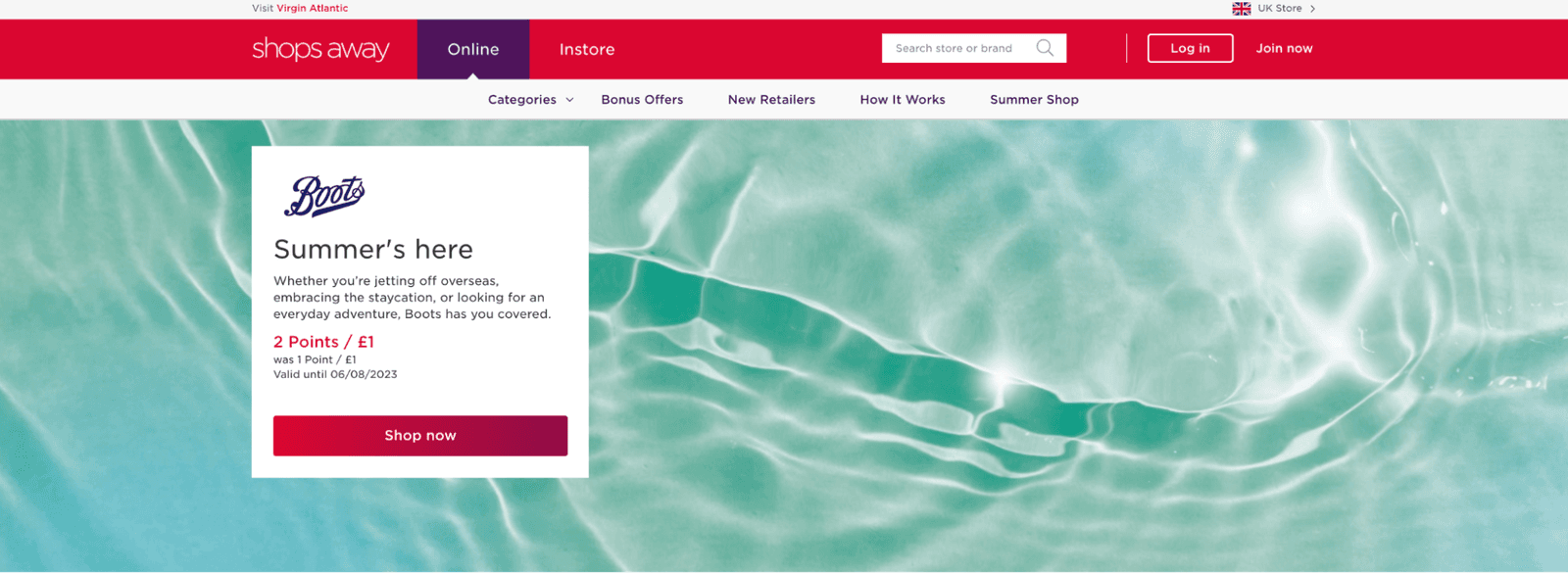 Amidst our testing on points.com assets, we discovered a website used by Virgin rewards customers to earn points when shopping on partner websites at "shopsaway.virginatlantic.com".